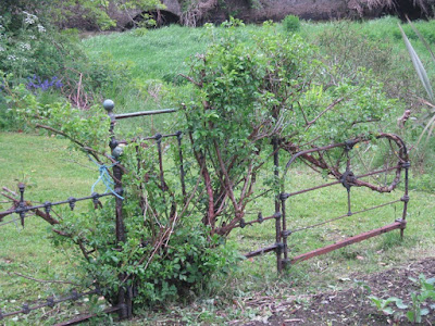 One on side of the house they have a garden, but it's tough going this year because it has been chilly and wet--January weather as our host said. I love the use of old headboards here!